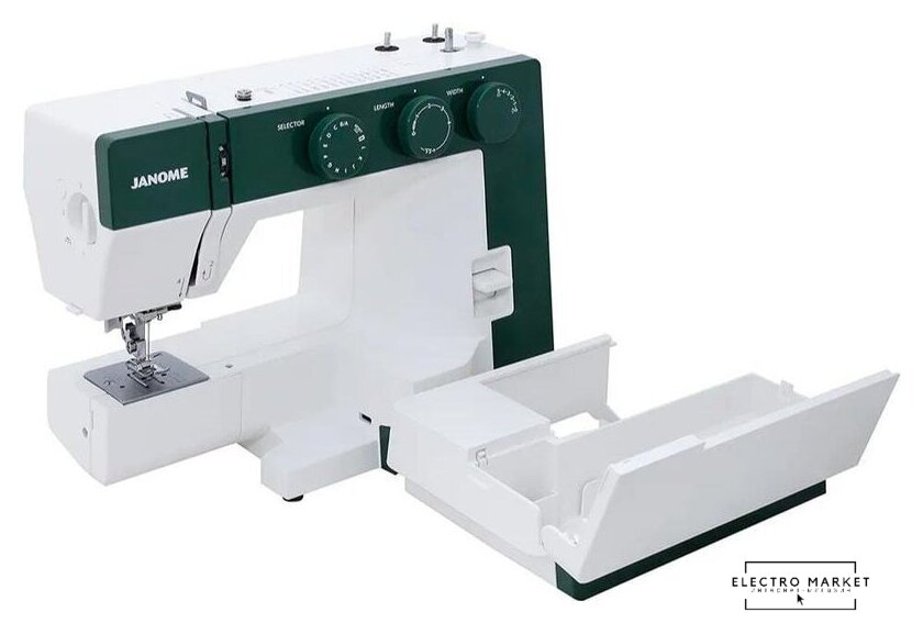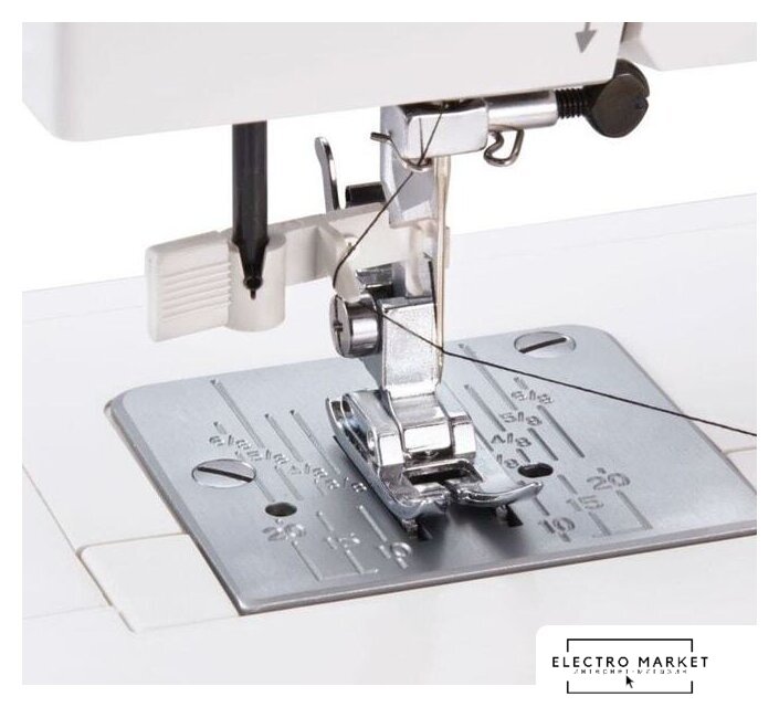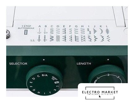 электромеханическая, горизонтальный ротационный челнок, полуавтоматическое выполнение петли, швейные операции: имитация оверлочной строчки/потайная строчка/трикотажная строчка/декоративная строчка