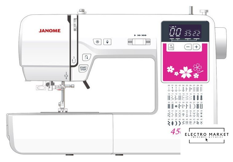 электромеханическая, вертикальный качающийся челнок, автоматическое выполнение петли, швейные операции: имитация оверлочной строчки/потайная строчка/трикотажная строчка/декоративная строчка