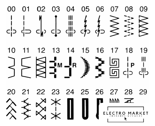 электромеханическая, вертикальный качающийся челнок, автоматическое выполнение петли, швейные операции: имитация оверлочной строчки/потайная строчка/трикотажная строчка/декоративная строчка