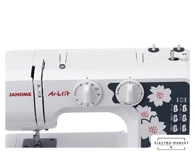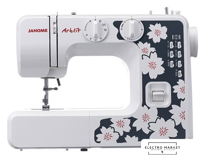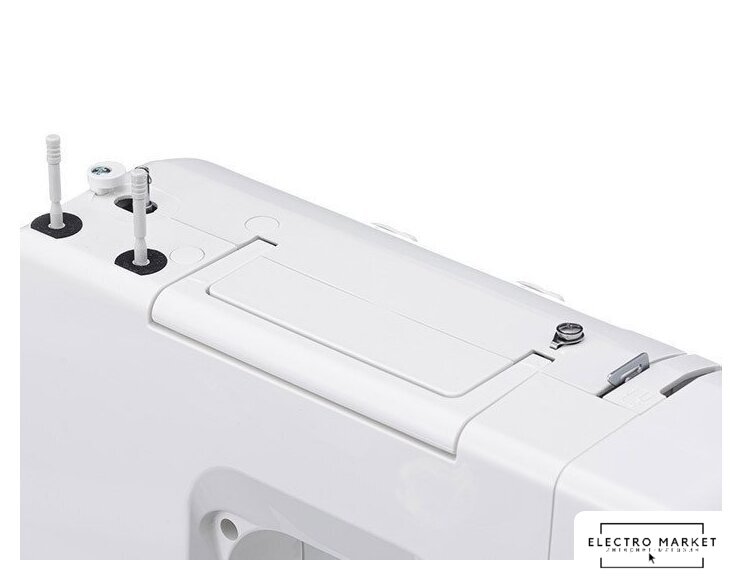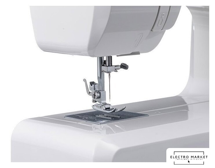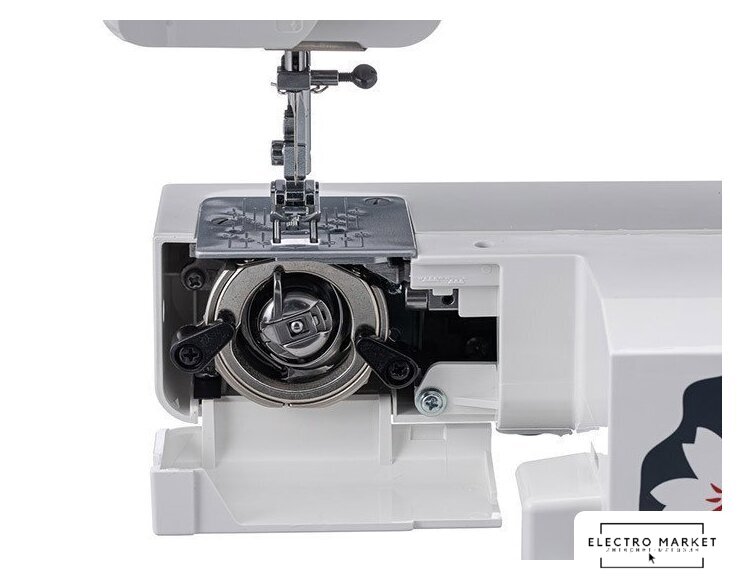 электромеханическая, вертикальный качающийся челнок, полуавтоматическое выполнение петли, швейные операции: имитация оверлочной строчки/потайная строчка/трикотажная строчка/декоративная строчка