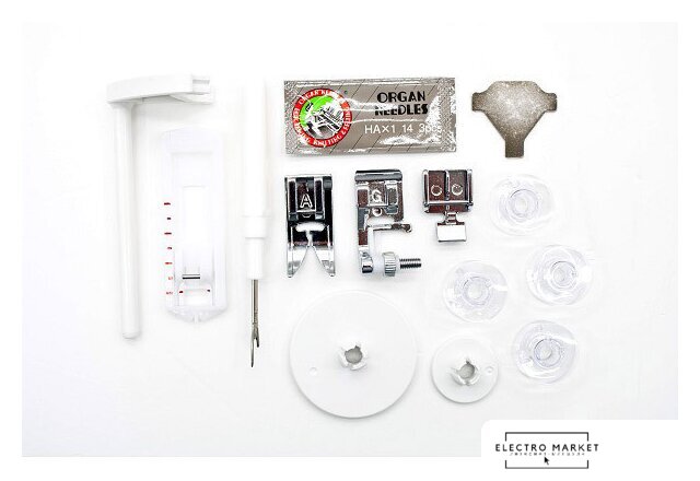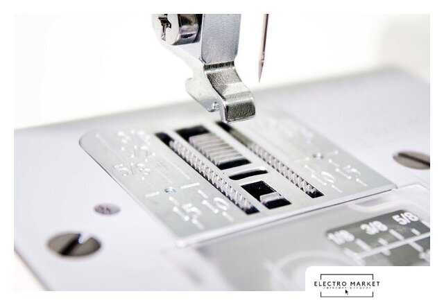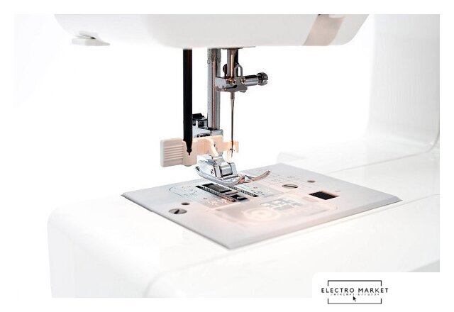 электромеханическая, вертикальный качающийся челнок, полуавтоматическое выполнение петли, швейные операции: имитация оверлочной строчки/потайная строчка/трикотажная строчка/декоративная строчка