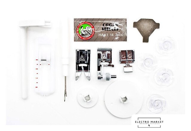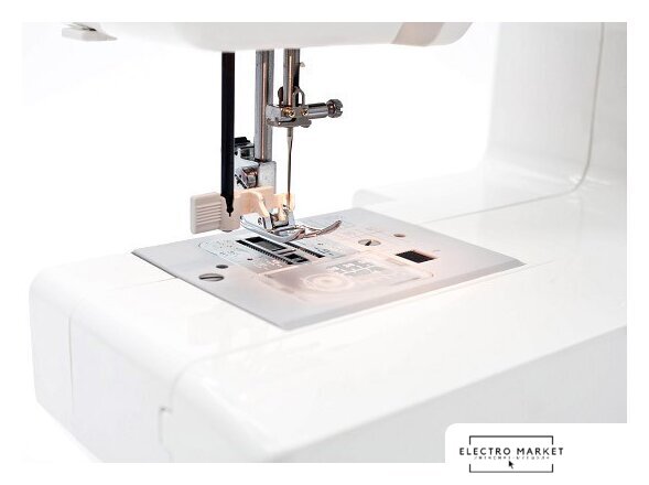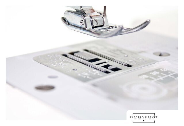 электромеханическая, вертикальный качающийся челнок, полуавтоматическое выполнение петли, швейные операции: имитация оверлочной строчки/потайная строчка/трикотажная строчка/декоративная строчка