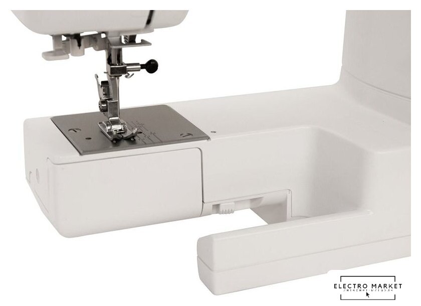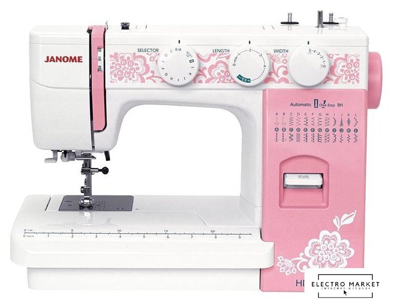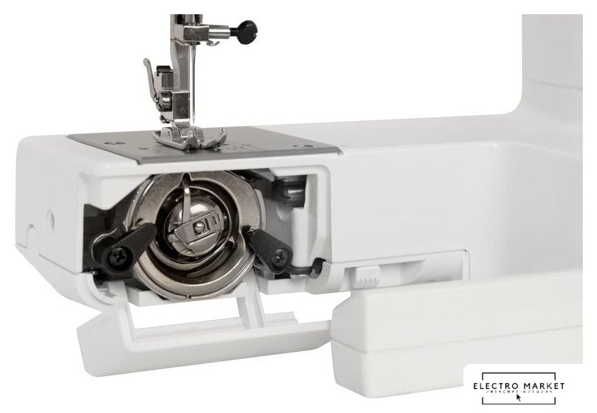 электромеханическая, вертикальный качающийся челнок, автоматическое выполнение петли, швейные операции: имитация оверлочной строчки/потайная строчка/трикотажная строчка/декоративная строчка
