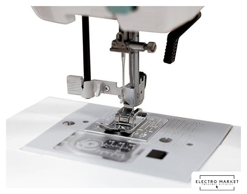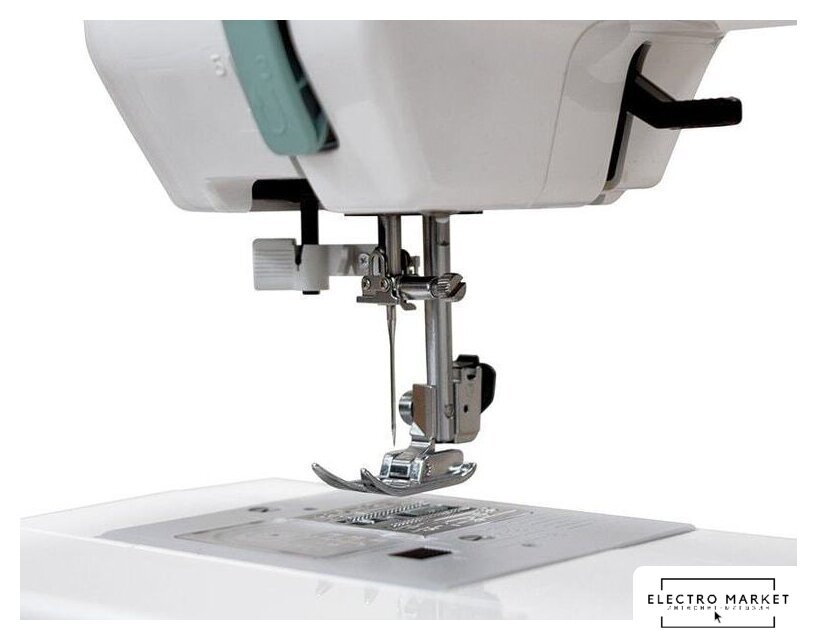 электромеханическая, вертикальный качающийся челнок, автоматическое выполнение петли, швейные операции: имитация оверлочной строчки/потайная строчка/трикотажная строчка/декоративная строчка