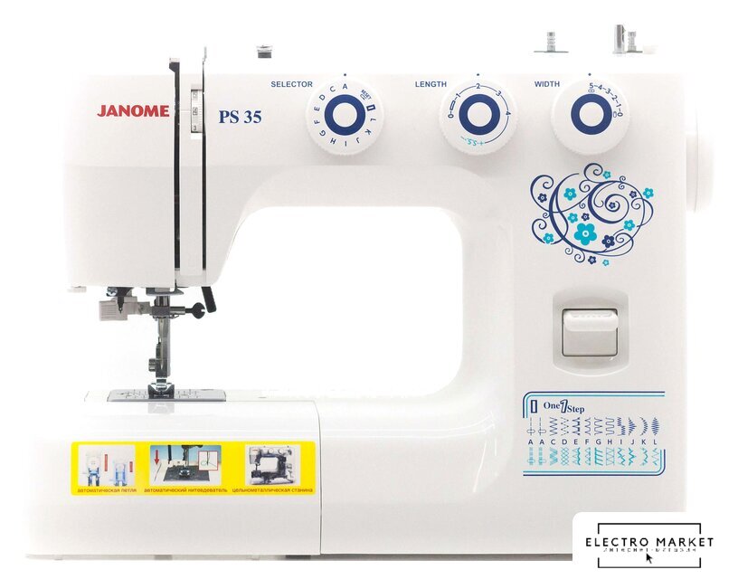 электронная, горизонтальный ротационный челнок, автоматическое выполнение петли, швейные операции: имитация оверлочной строчки/потайная строчка/декоративная строчка/алфавит (латиница)/алфавит (кирилица)