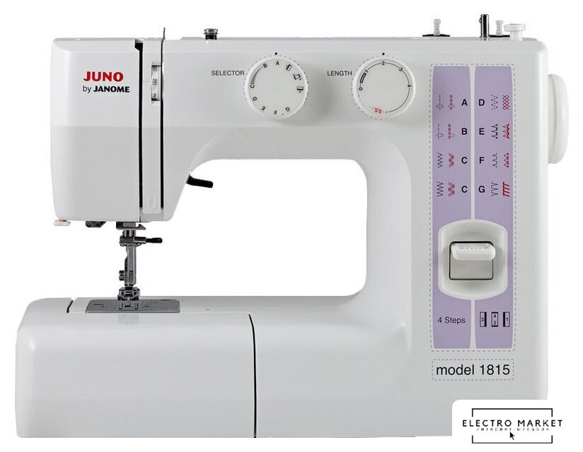 электромеханическая, вертикальный качающийся челнок, автоматическое выполнение петли, швейные операции: имитация оверлочной строчки/потайная строчка/трикотажная строчка/декоративная строчка
