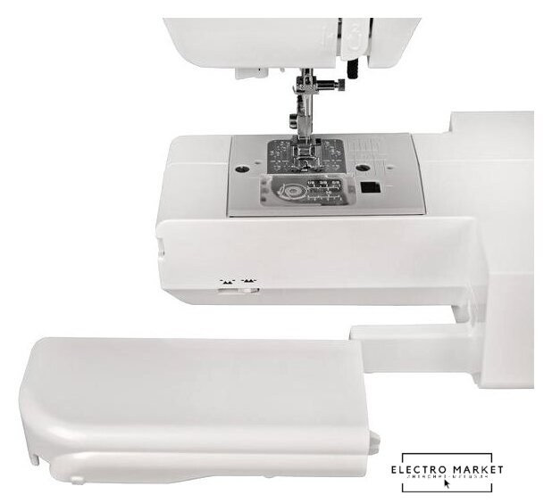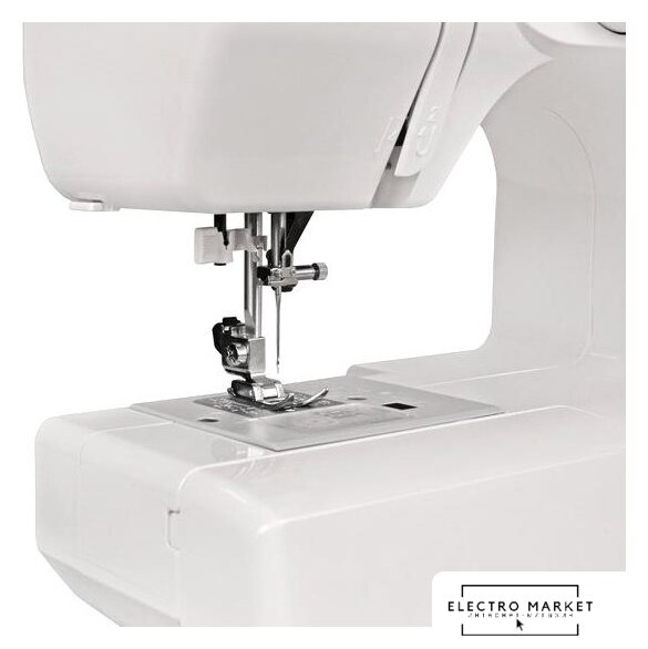 электромеханическая, вертикальный качающийся челнок, полуавтоматическое выполнение петли, швейные операции: имитация оверлочной строчки/потайная строчка/трикотажная строчка/декоративная строчка