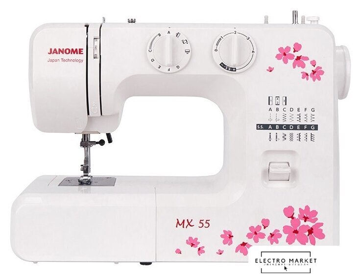 электромеханическая, вертикальный качающийся челнок, полуавтоматическое выполнение петли, швейные операции: имитация оверлочной строчки/потайная строчка/трикотажная строчка/декоративная строчка