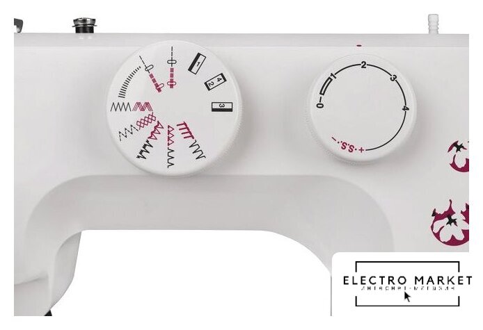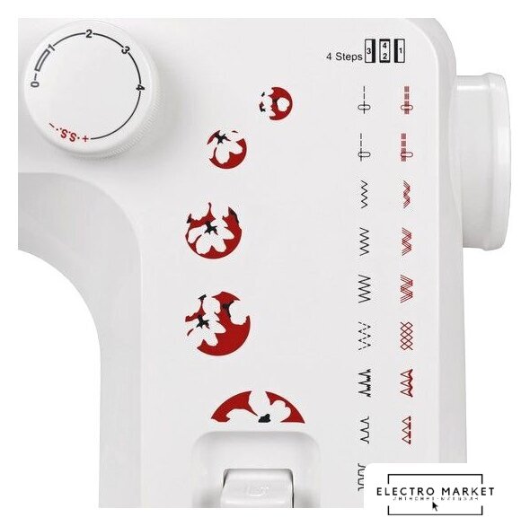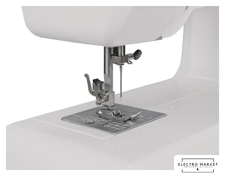 электромеханическая, вертикальный качающийся челнок, полуавтоматическое выполнение петли, швейные операции: имитация оверлочной строчки/потайная строчка/трикотажная строчка/декоративная строчка