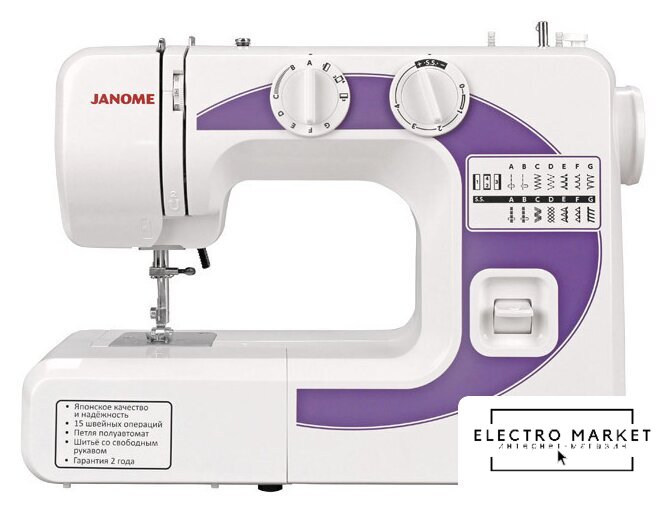 электромеханическая, вертикальный качающийся челнок, автоматическое выполнение петли, швейные операции: имитация оверлочной строчки/потайная строчка/трикотажная строчка/декоративная строчка