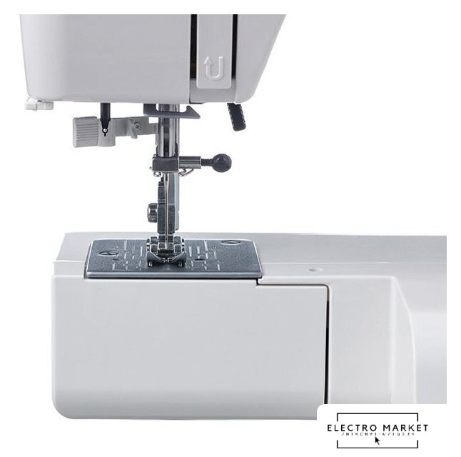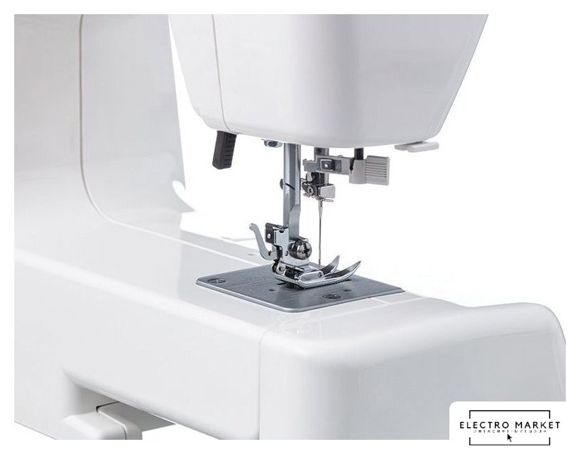 электромеханическая, вертикальный качающийся челнок, автоматическое выполнение петли, швейные операции: имитация оверлочной строчки/потайная строчка/трикотажная строчка/декоративная строчка