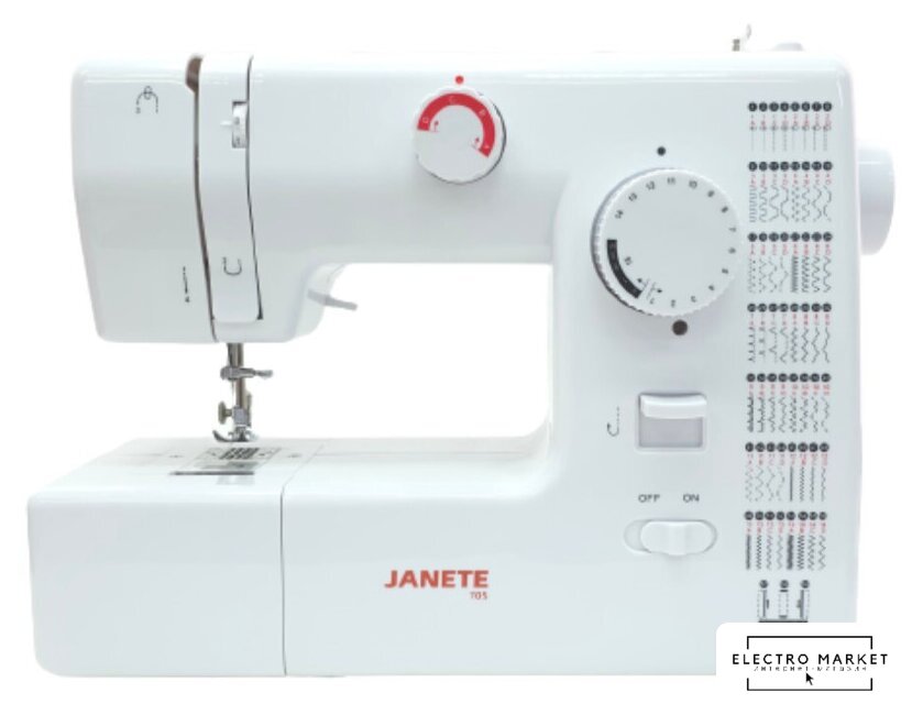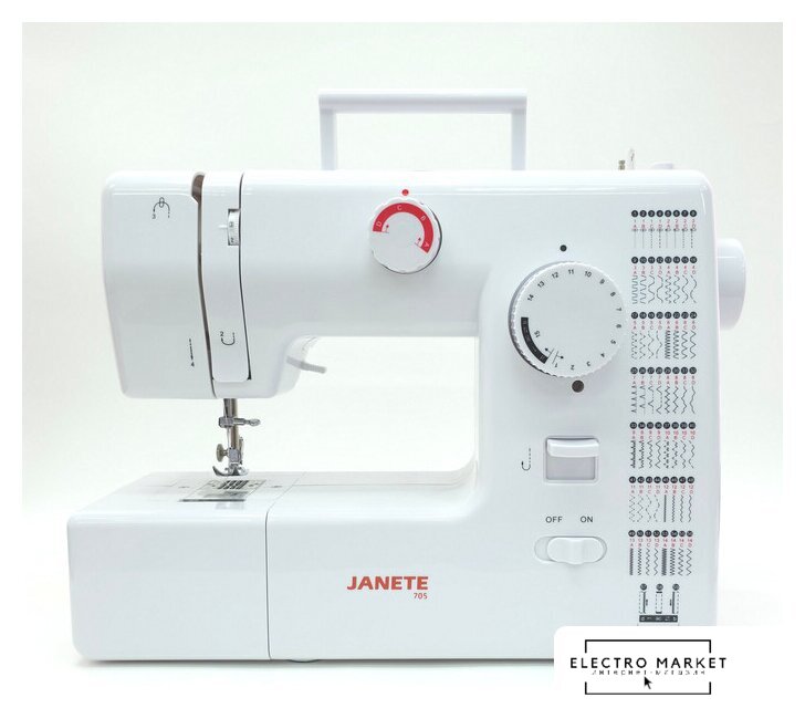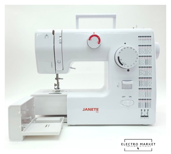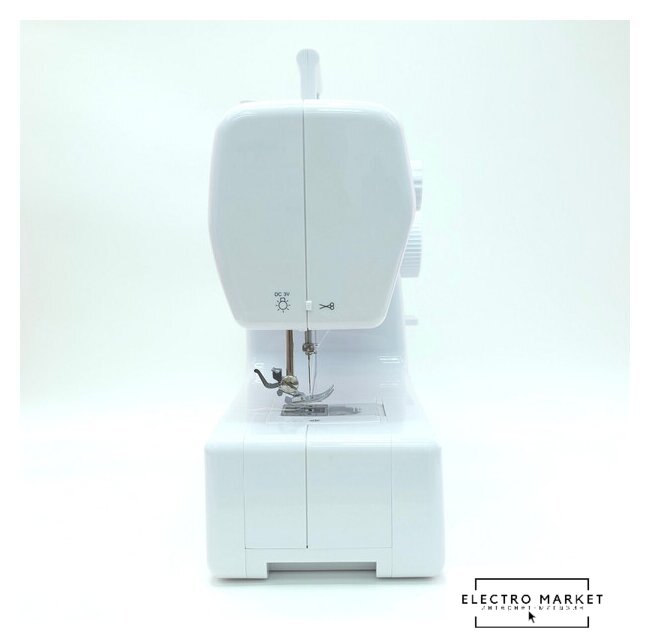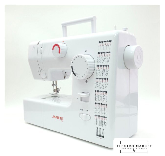 механическая, вертикальный качающийся челнок, автоматическое выполнение петли, швейные операции: имитация оверлочной строчки/потайная строчка/трикотажная строчка/декоративная строчка