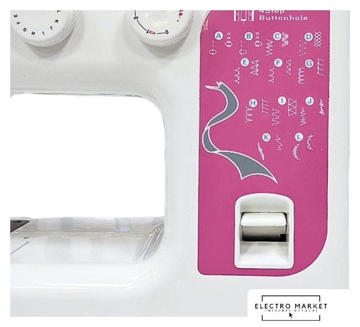электромеханическая, вертикальный качающийся челнок, полуавтоматическое выполнение петли, швейные операции: имитация оверлочной строчки/потайная строчка/трикотажная строчка/декоративная строчка