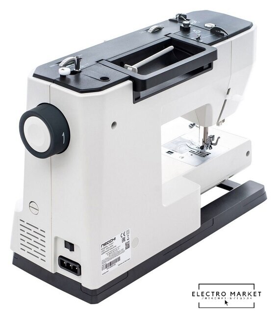 электромеханическая, вертикальный качающийся челнок, автоматическое выполнение петли, швейные операции: имитация оверлочной строчки/потайная строчка/трикотажная строчка/декоративная строчка