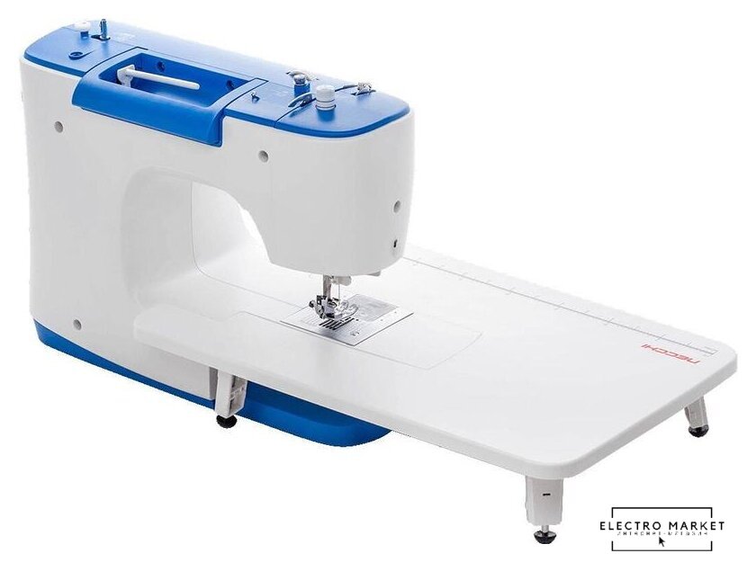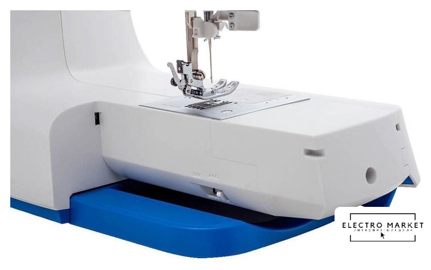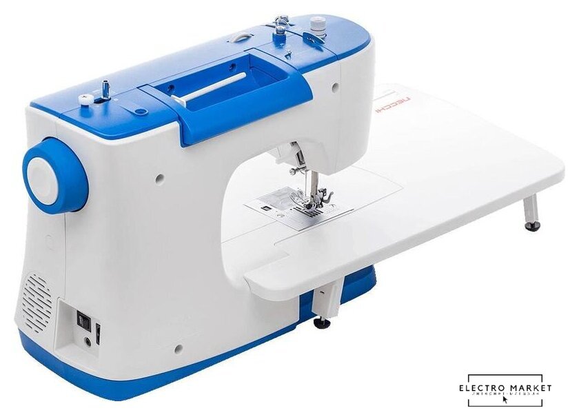 электромеханическая, вертикальный качающийся челнок, автоматическое выполнение петли, швейные операции: имитация оверлочной строчки/потайная строчка/трикотажная строчка/декоративная строчка