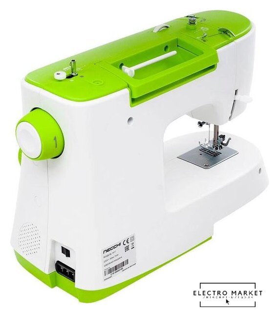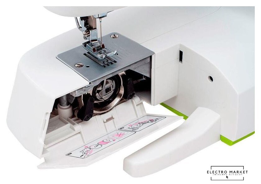 электромеханическая, вертикальный качающийся челнок, полуавтоматическое выполнение петли, швейные операции: имитация оверлочной строчки/потайная строчка/трикотажная строчка/декоративная строчка