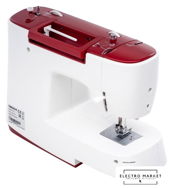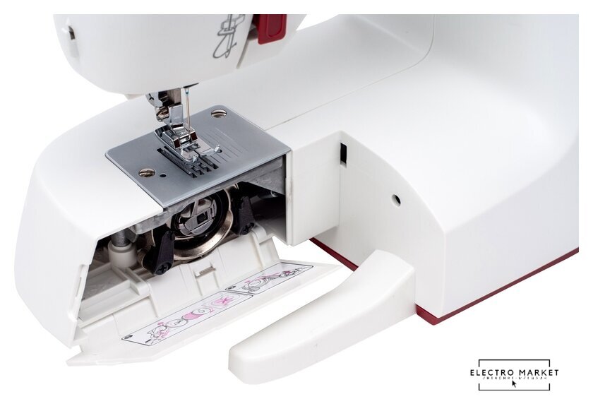 электромеханическая, горизонтальный ротационный челнок, автоматическое выполнение петли, швейные операции: имитация оверлочной строчки/потайная строчка/трикотажная строчка/декоративная строчка/алфавит (латиница)/алфавит (кирилица)