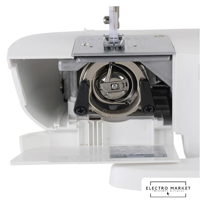 электромеханическая, вертикальный качающийся челнок, полуавтоматическое выполнение петли, швейные операции: имитация оверлочной строчки/потайная строчка/декоративная строчка
