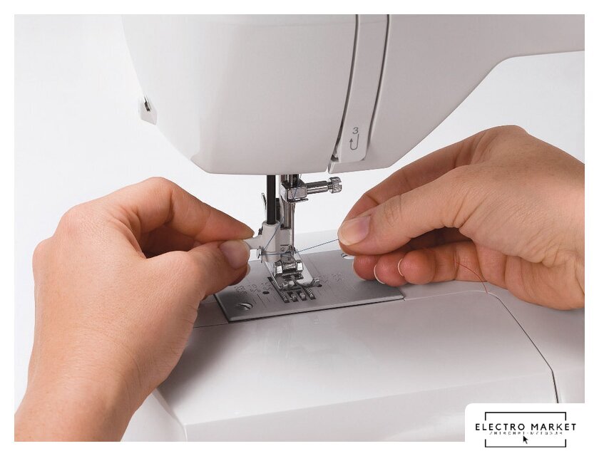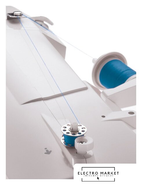 электромеханическая, вертикальный качающийся челнок, автоматическое выполнение петли, швейные операции: имитация оверлочной строчки/потайная строчка/трикотажная строчка/декоративная строчка