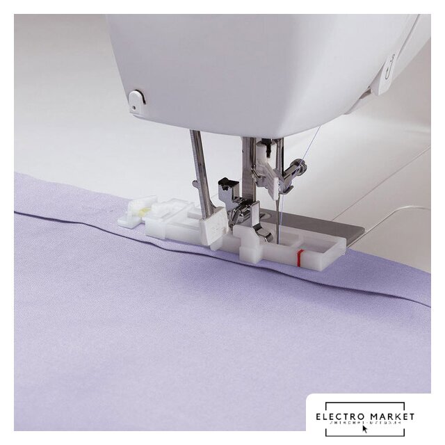 электромеханическая, вертикальный качающийся челнок, автоматическое выполнение петли, швейные операции: имитация оверлочной строчки/потайная строчка/трикотажная строчка/декоративная строчка