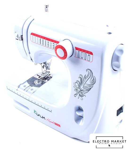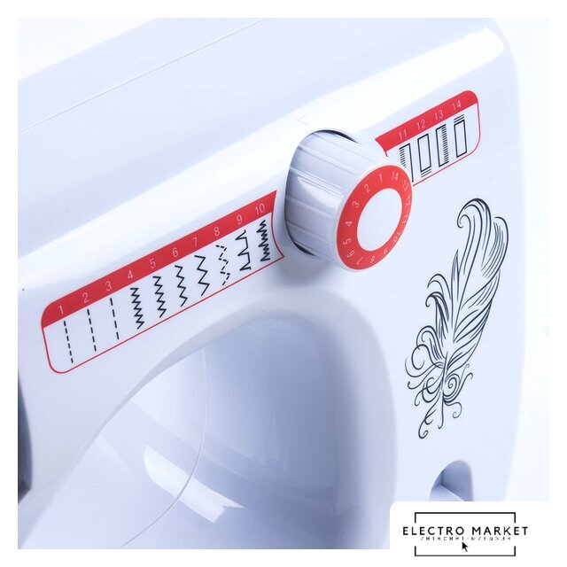 электромеханическая, вертикальный качающийся челнок, автоматическое выполнение петли, швейные операции: имитация оверлочной строчки/потайная строчка/трикотажная строчка/декоративная строчка