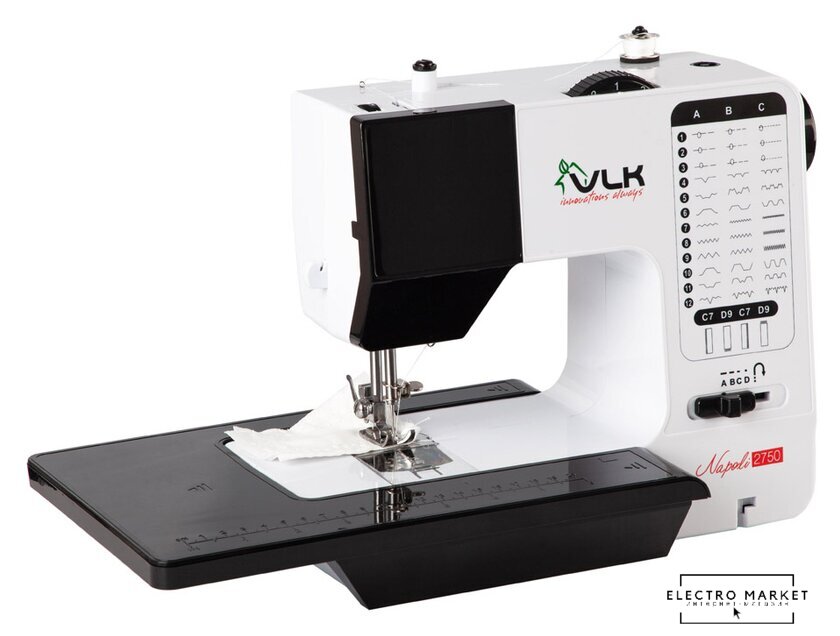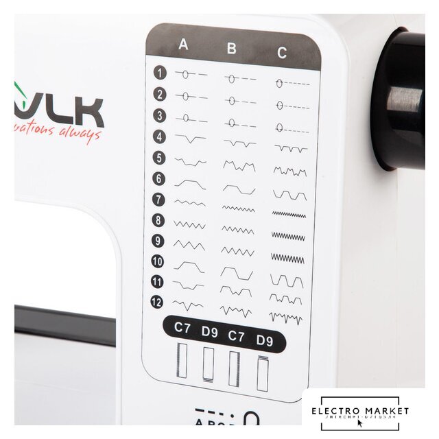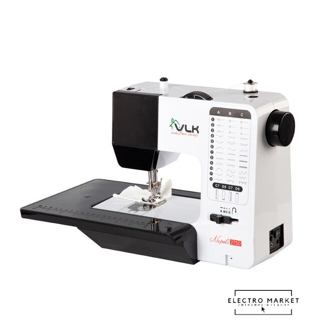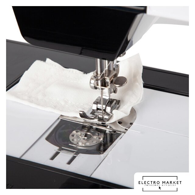 электромеханическая, вертикальный качающийся челнок, полуавтоматическое выполнение петли, швейные операции: имитация оверлочной строчки/потайная строчка/трикотажная строчка/декоративная строчка