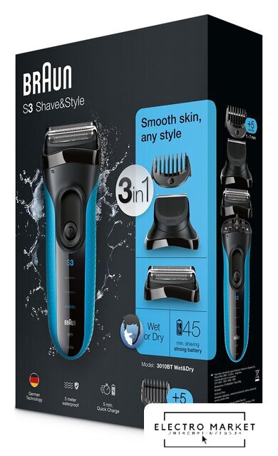 сеточная, влажное бритье, сенсор щетины, питание от аккумулятора, 50 минут автономной работы