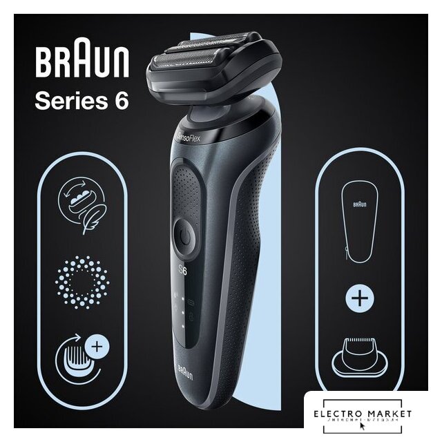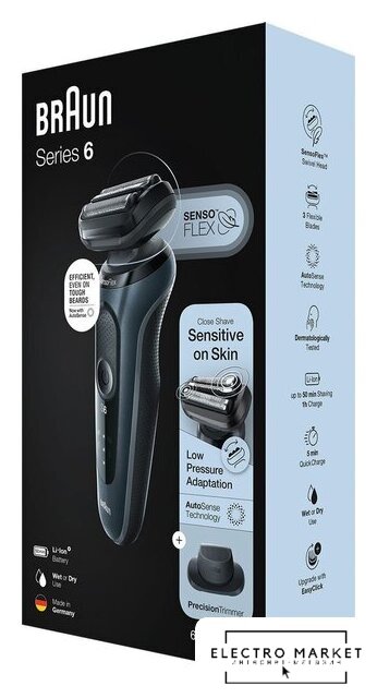 сеточная, влажное бритье, сенсор щетины, устройство для автомат. очистки, питание от аккумулятора, 1 час автономной работы