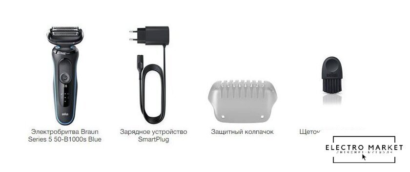 сеточная, влажное бритье, сенсор щетины, питание от аккумулятора, 50 минут автономной работы