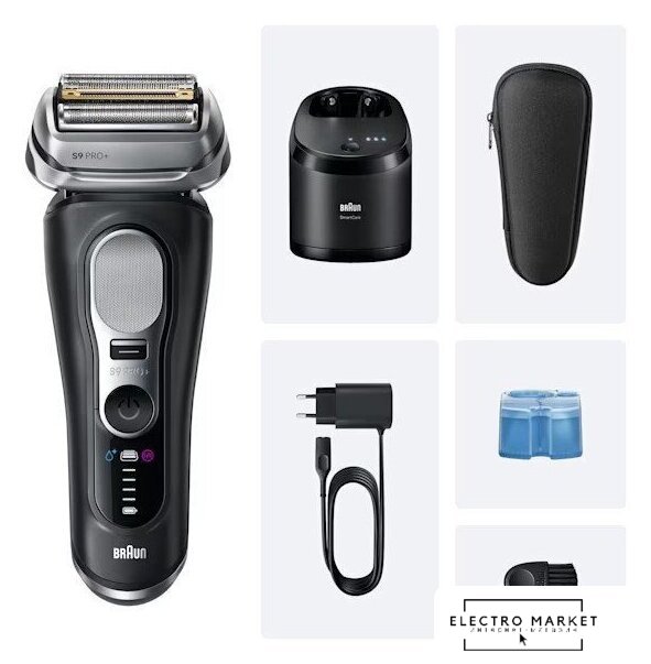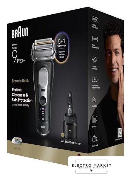 | Комплект поставки | Бритва Series 9 Pro+Твердый тканевый дорожный футлярЦентр SmartCare 6 в 1Чистящий картридж (1 шт.)SmartPlugЩетка для чистки |