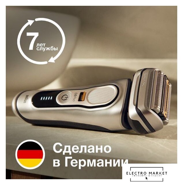 сеточная, влажное бритье, сенсор щетины, устройство для автомат. очистки, питание от аккумулятора, 1 час автономной работы