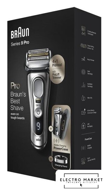 | Комплект поставки | - электробритва;- футляр PowerCase;- подставка для зарядки;- адаптер питания;- щетка для чистки. |
