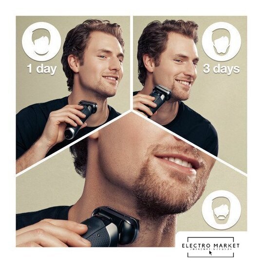сеточная, влажное бритье, сенсор щетины, устройство для автомат. очистки, питание от аккумулятора, 1 час автономной работы