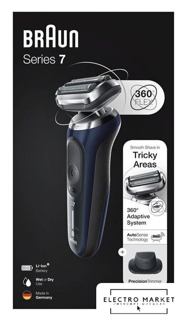 сеточная, влажное бритье, сенсор щетины, питание от аккумулятора, 60 минут автономной работы