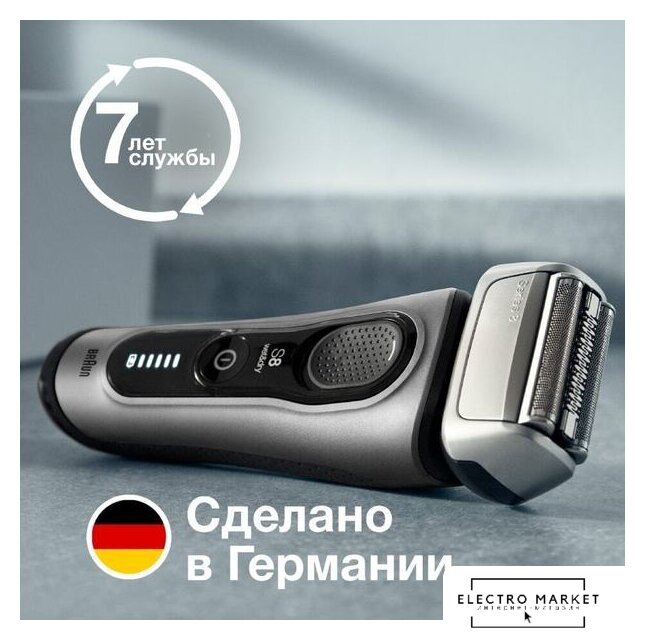 сеточная, влажное бритье, сенсор щетины, устройство для автомат. очистки, питание от аккумулятора, 1 час автономной работы
