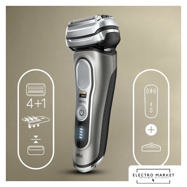 сеточная, влажное бритье, сенсор щетины, устройство для автомат. очистки, питание от аккумулятора, 1 час автономной работы
