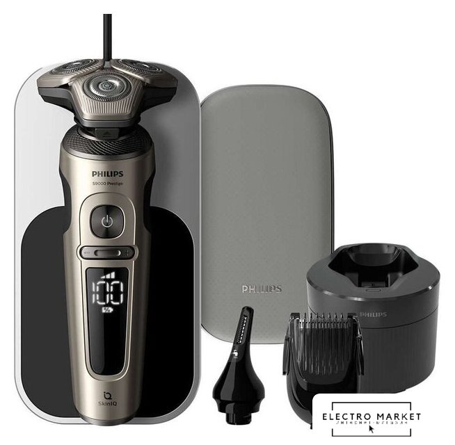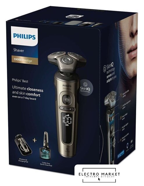 Комплект поставки | БритваСтанция очистки Quick Clean Pod, в комплект входит 1 картриджТриммер для бородыТриммер для волос в носуЧехолБеспроводная зарядка |