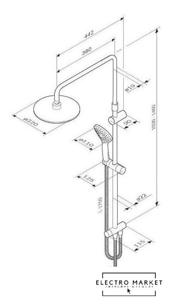 | Диаметр (ширина) верхнего душа | 22 мм |