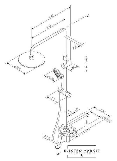 | Вылет верхнего душа | 442 мм |