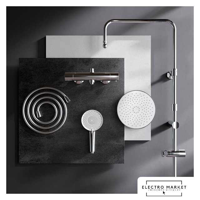 | Комплектация | верхний душ, штанга, ручной душ (лейка), держатель лейки, шланг, смеситель |