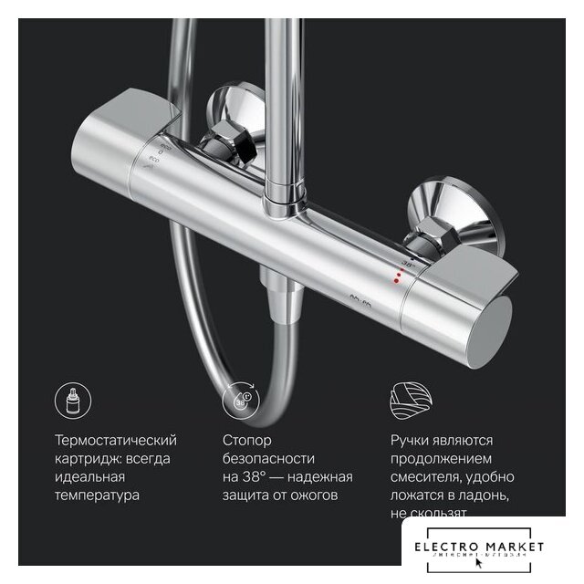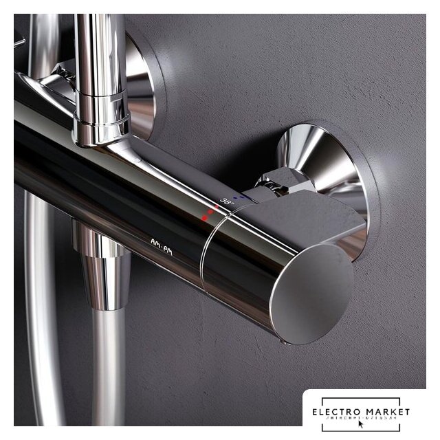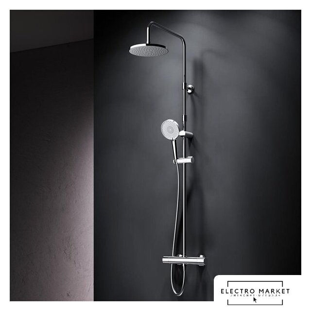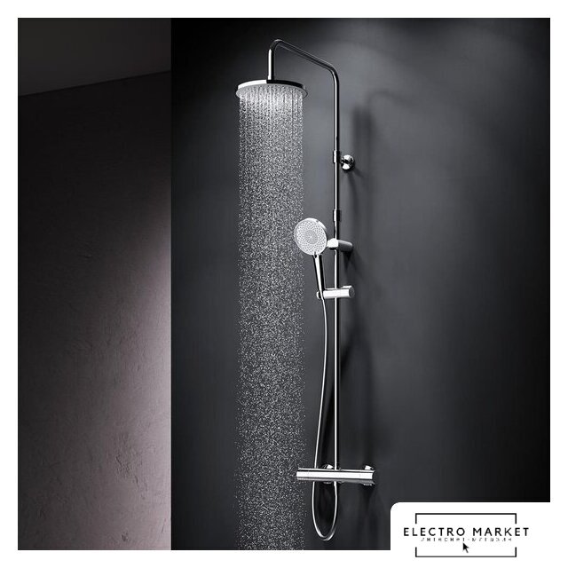 душевая система (с верхним душем), настенный монтаж, термостатический смеситель, верхний душ 250 мм, ручной душ 80 мм