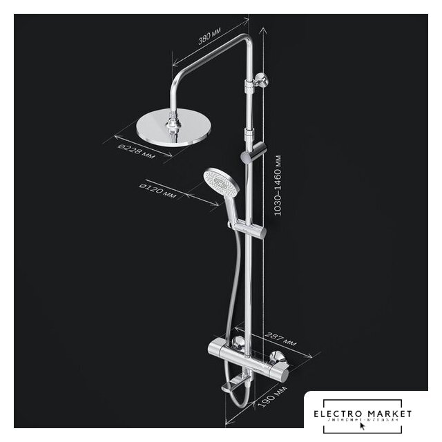душевая система (с верхним душем), настенный монтаж, механический смеситель, верхний душ 300 мм, ручной душ 24 мм