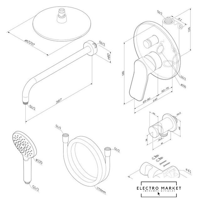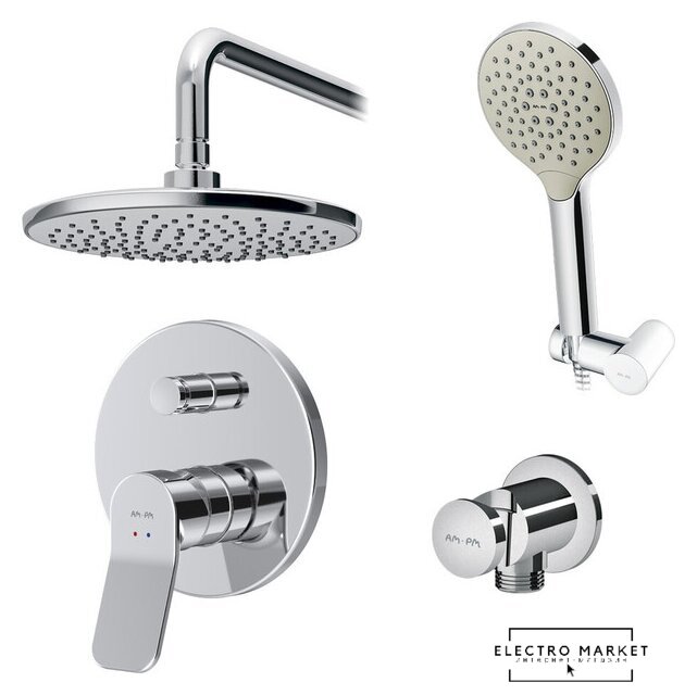 душевая система (с верхним душем), скрытый монтаж, механический смеситель, верхний душ 220 мм, ручной душ 120 мм