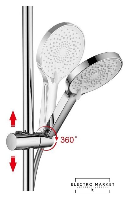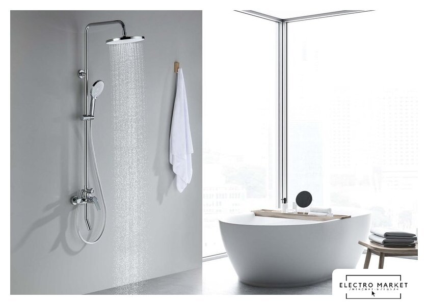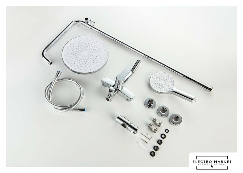 | Комплектация | верхний душ, штанга, ручной душ (лейка), шланг, смеситель |