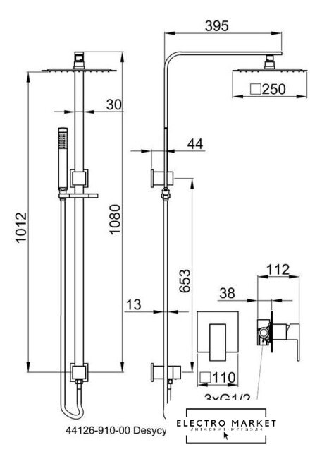 Комплектация | верхний душ, штанга, ручной душ (лейка), держатель лейки, шланг, смеситель |