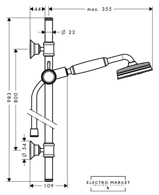 душевой гарнитур (без верхнего душа), настенный монтаж, отсутствует смеситель, ручной душ 24 мм