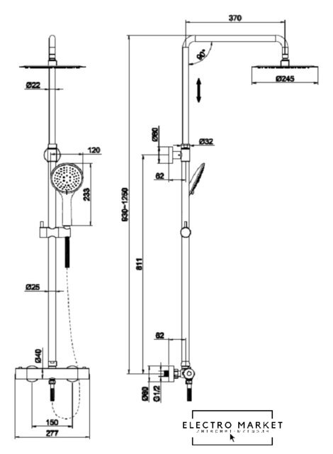 душевая система (230 мм), настенный монтаж, термостатический смеситель