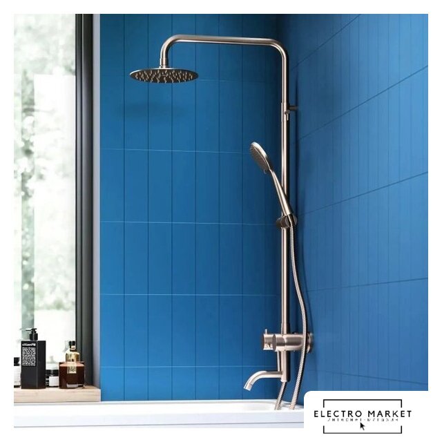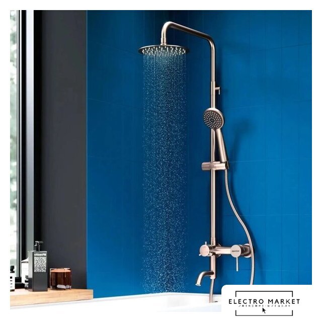 | Комплектация | верхний душ, штанга, ручной душ (лейка), держатель лейки, шланг, смеситель, излив для ванны |
