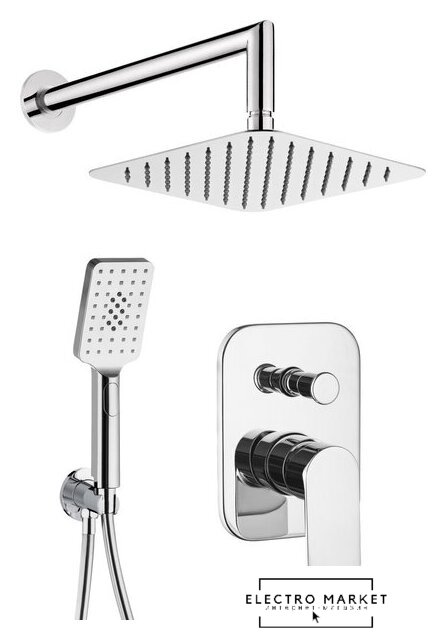 душевая система (с верхним душем), скрытый монтаж, механический смеситель, верхний душ 250 мм, ручной душ 80 мм