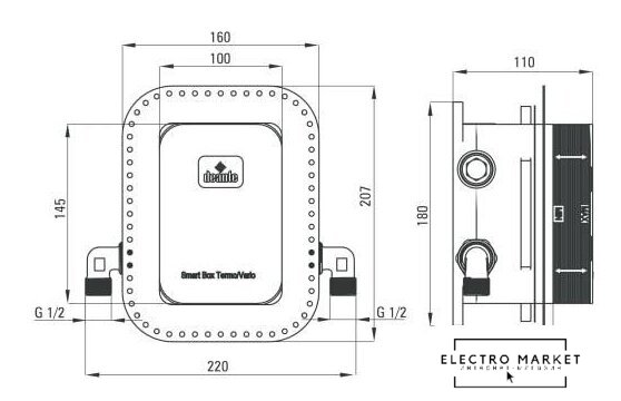 душевая система (310 мм), настенный монтаж, термостатический смеситель